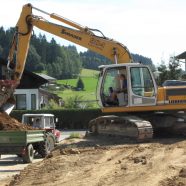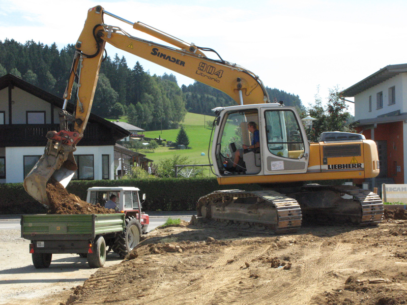 Da Franz aber heute noch frei hat, ist sein Traktor auch heute wieder im Einsatz und bringt einen Teil der Erde weg.