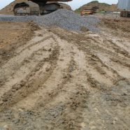 Pünktlich frühmorgens geht es wieder los und auch das Wetter spielt (noch) mit. Im Laufe des Tages kommt ziemlich viel Material auf die Baustelle – vom Schotter bis zu den Rohren.