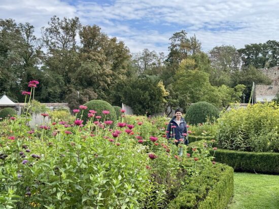 Der weitläufige Schlossgarten, der den berühmten italienischen Renaissancegärten nachempfunden ist, begeistert uns. Geformte Beete, seltene Pflanzen, Figuren aus Ton und Wasserspiele bieten Abwechslung. Zahlreiche Sitzgelegenheiten laden zum Entspannen ein.