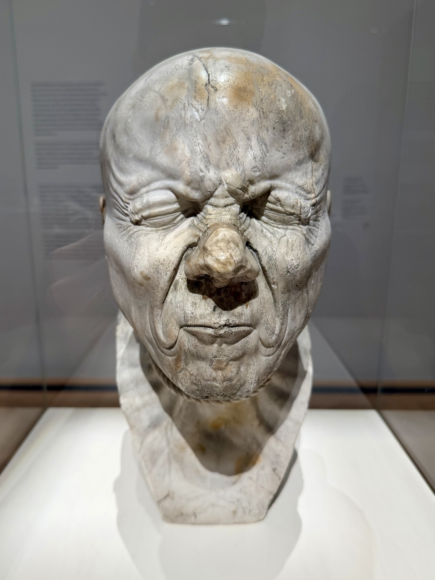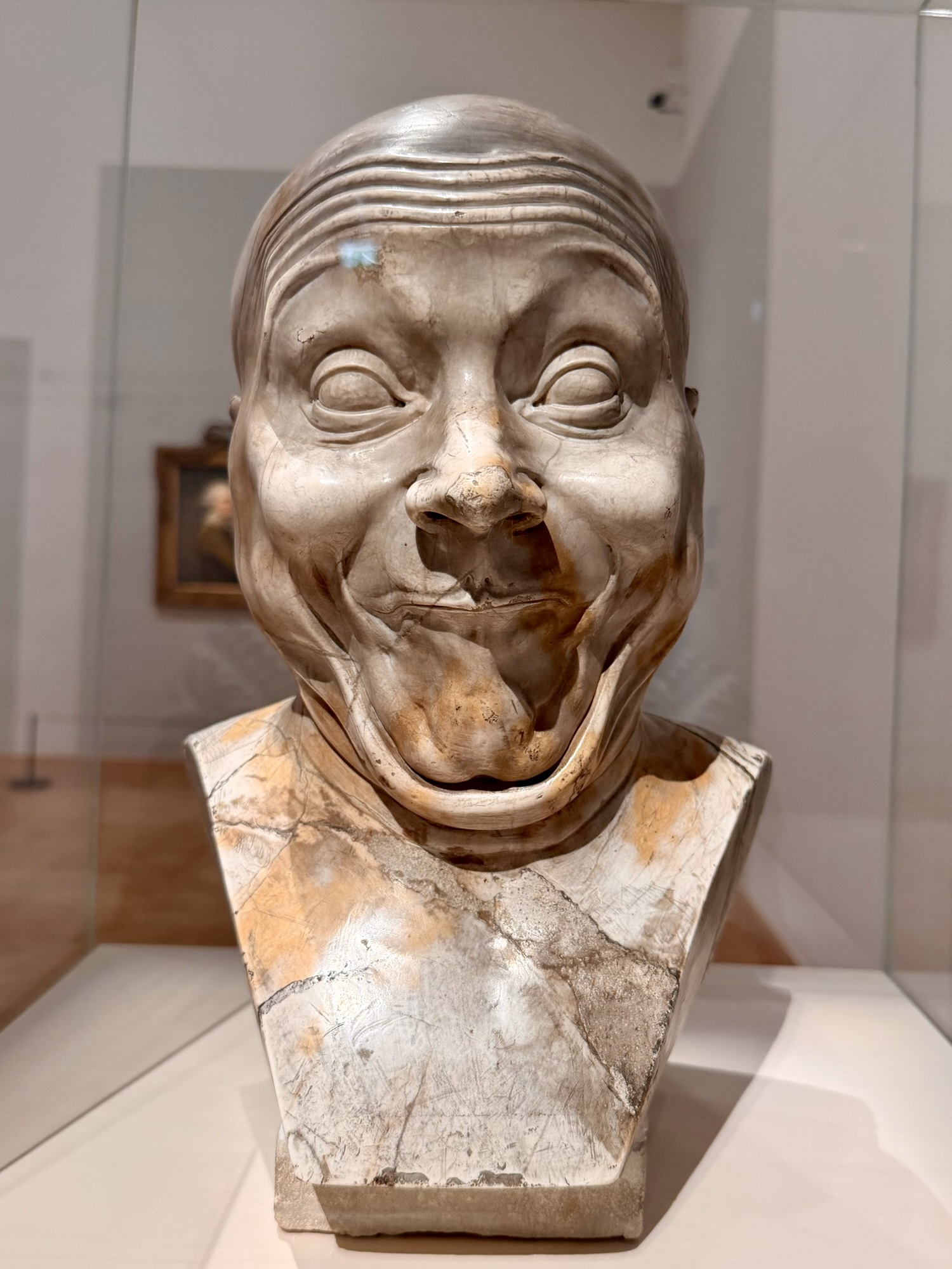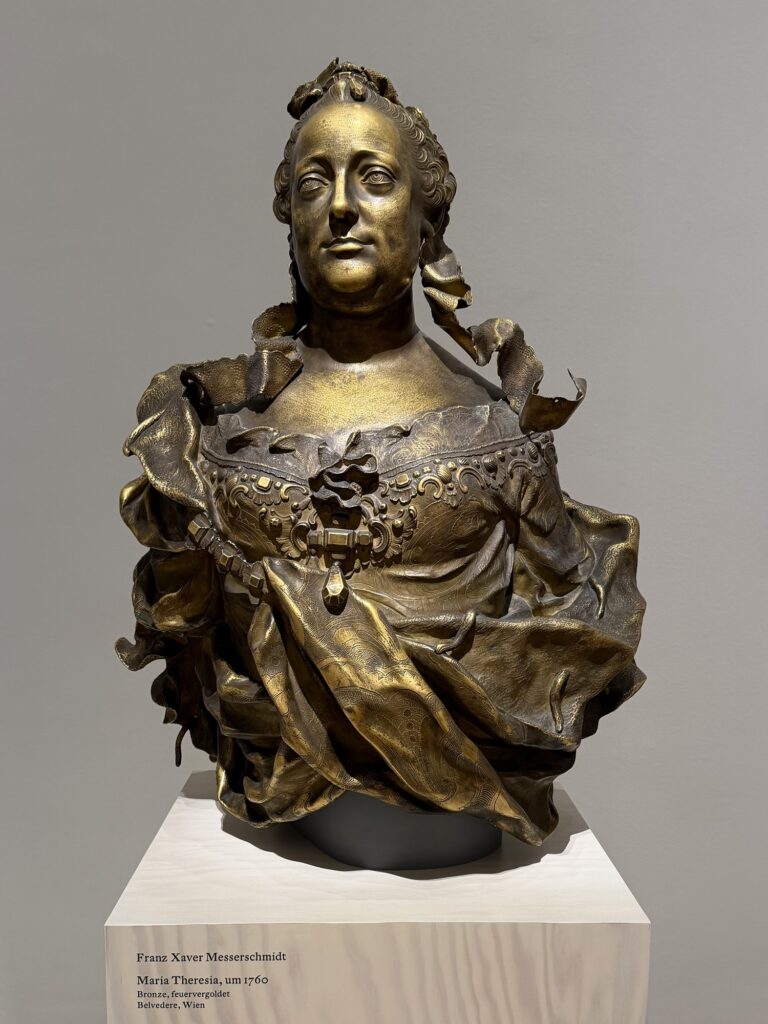 Dort entstanden seine berühmten Charakterköpfe. Diese extremen, oft verstörenden Selbstporträts zeigen menschliche Emotionen: Schmerz, Spott, Zorn oder Verzweiflung.