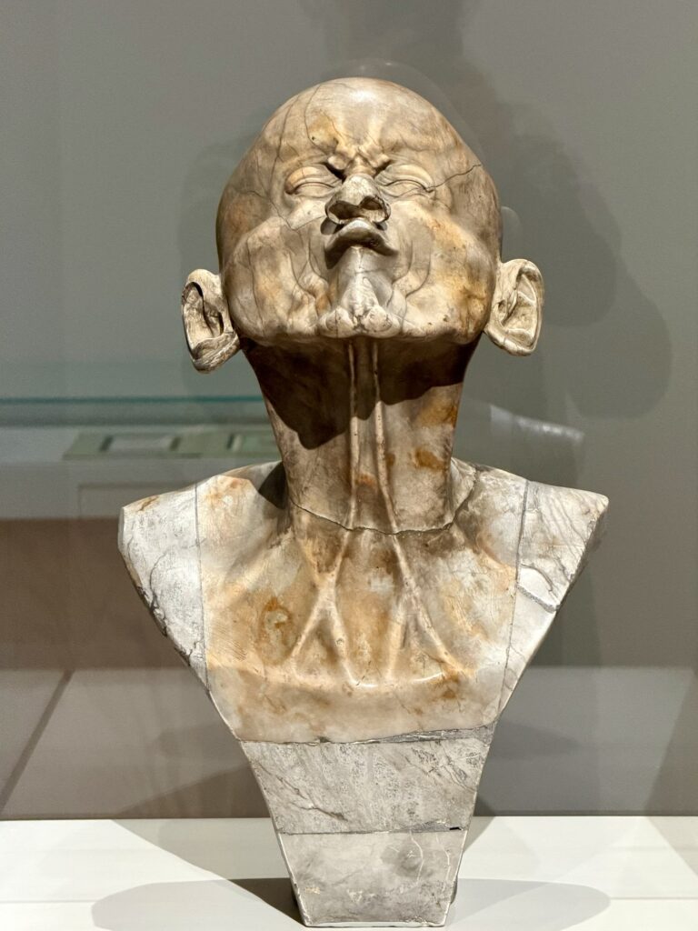 Außerdem zeigen die Köpfe die kulturellen und wissenschaftlichen Umbrüche des 18. Jahrhunderts. Mimikforschung lag damals im Trend, was in der Ausstellung durch vergleichbare Werke anderer Künstler verdeutlicht wird.