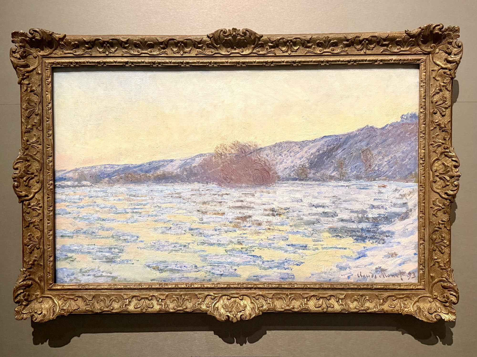 Besonders gefallen hat mir Monets Gemälde Eisschollen im Dämmerlicht, das 1893 entstand. Es wurde im Freien gemalt, um die besondere Lichtstimmung der winterlichen Kälte einzufangen.