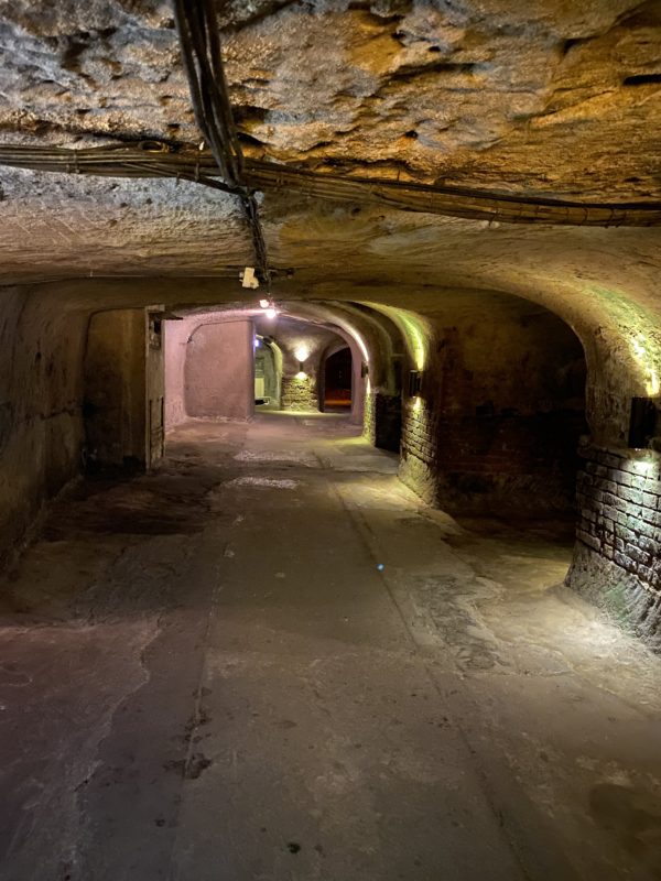 Nach dieser Stärkung machen wir uns auf in Richtung Hausbrauerei Altstadthof, wo die Führung „Historische Felsengänge“ startet. Der Förderverein Nürnberger Felsengänge e.V. bietet eine Vielzahl an Führungen an; wir haben uns für die geschichtliche Führung durch die Tiefe entschieden. Die Felsengänge sind ein unterirdisches Gang- und Kellersystem, dass ab 1380 unter Nürnberg entstanden ist. Genutzt wurde es hauptsächlich zur Lagerung von Bier, zur Wassergewinnung und als Verteidigungsanlage (Kasematten) für die Burg. 1380 werden die Felsengänge zum ersten Mal urkundlich erwähnt.