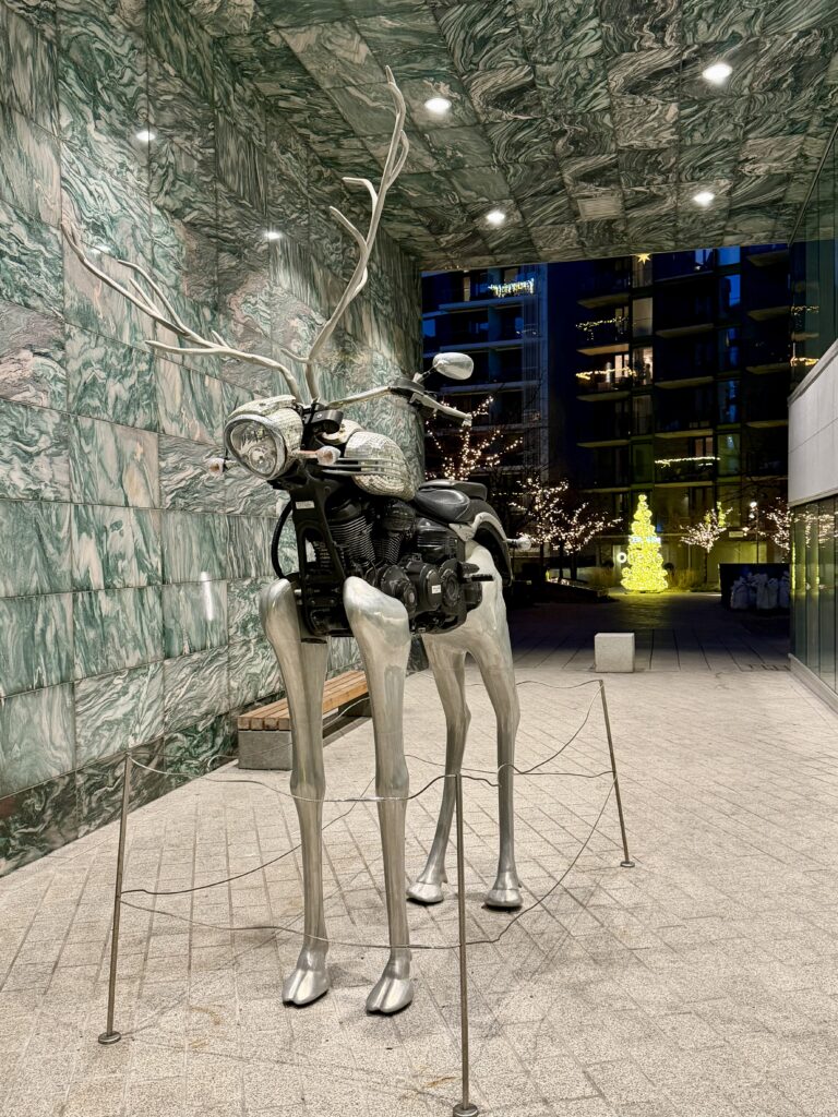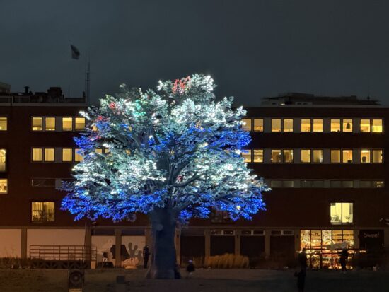 Der Oslo Tree ist eine Kunstinstallation direkt neben unserem Hotel, die die Grenzen zwischen Kunst, Natur und Technologie verschwimmen lassen soll.
