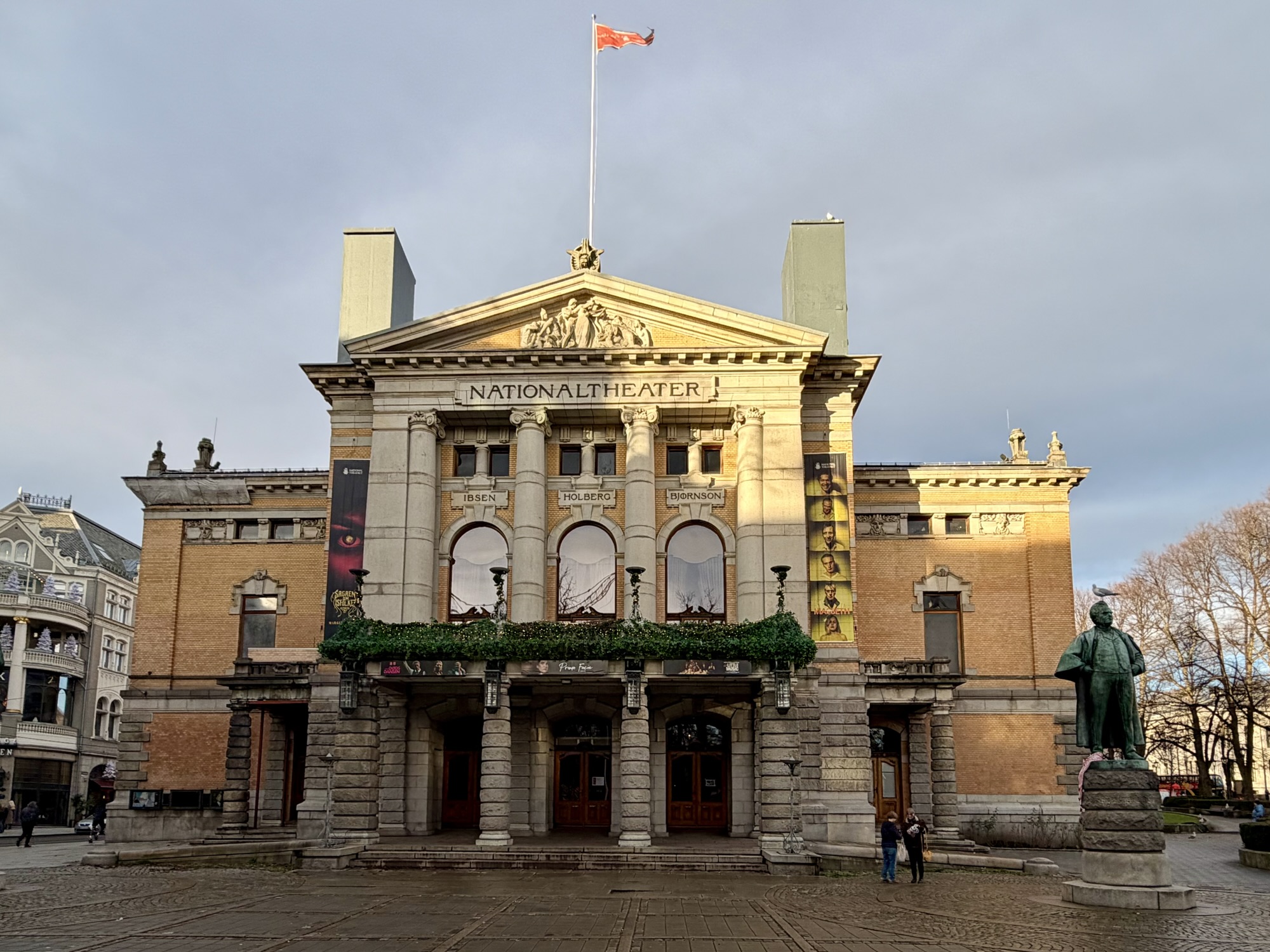 Zwischen den historischen Fassaden taucht bald das Nationaltheateret auf – ein neoklassizistisches Gebäude von 1899. Es ist eines der bedeutendsten Theater Norwegens und spielt eine zentrale Rolle in der Aufführung der Werke norwegischer Dramatiker wie Henrik Ibsen.