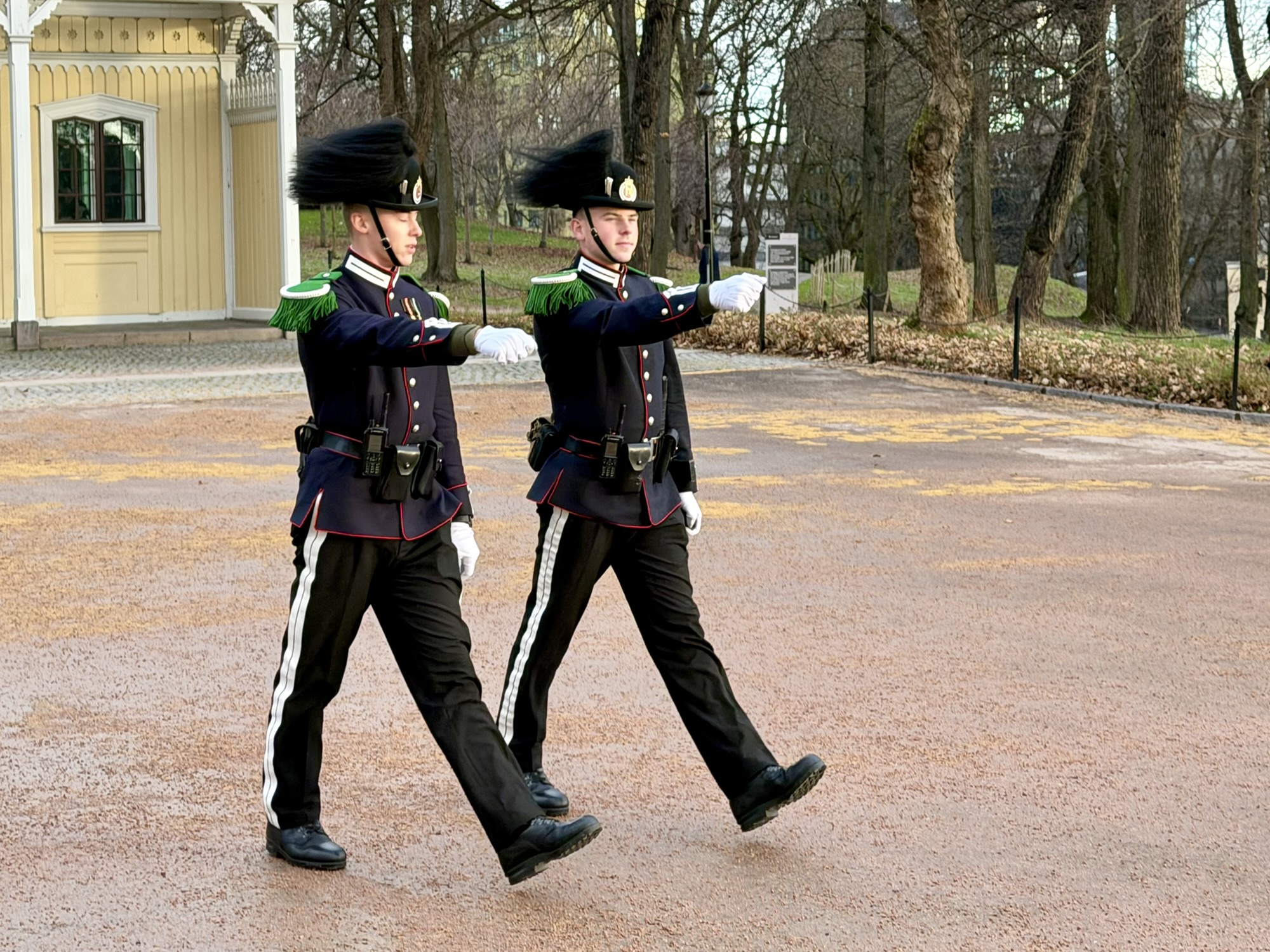 Die Gardekompanie, die den vollständigen Namen Königlich Norwegische Schützenkompanie trägt, wurde 1856 gegründet. Seit 1888 ist die Königsgarde täglich rund um die Uhr im Einsatz. So auch heute – im Gegensatz zu London wirken die Wachen aber sehr entspannt.