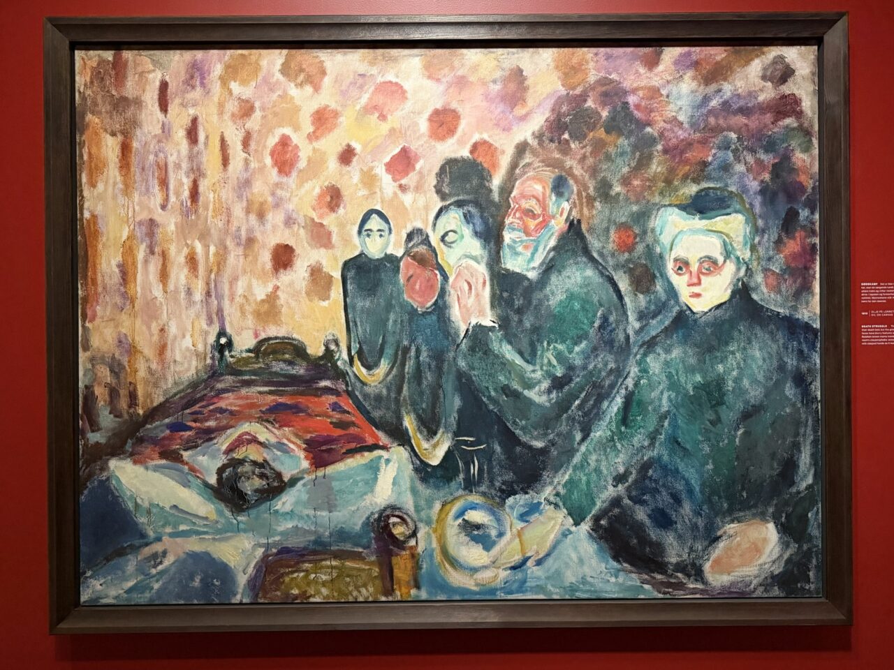 Das Museum widmet sich aber nicht nur den berühmten Gemälden. In den thematisch gegliederten Räumen erfahren wir auch Details zu Munchs Leben. Munch wurde 1863 auf den Løten, geboren und wuchs in Oslo auf. Seine Schwester starb früh an Tuberkulose, sein Vater war streng religiös – beides beeinflusste Munch.