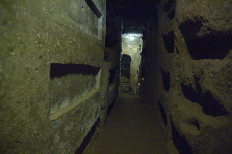 Nach römischem Recht durften Tote nur außerhalb der Stadt begraben werden. An den Straßen vor den Stadttoren bildeten sich daher regelrechte Totenstädte – dennoch wurde mit der Zeit der Platz darin knapp. Die Christen begannen aus diesem Grund ihre Toten in unterirdischen Gängen zu bestatten, die in das weiche Gestein gegraben wurden. So entstanden zum Teil mehrstöckige Anlagen, in denen zehntausende Menschen begraben wurden.