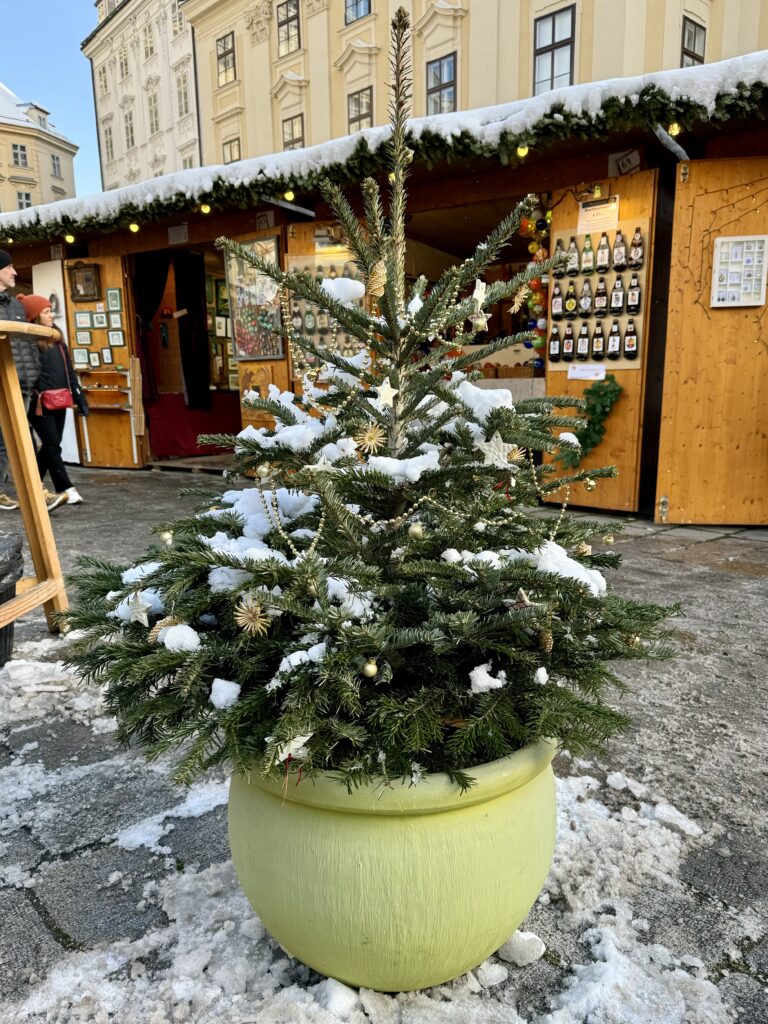 Wir fangen hier an, da dieser Markt auf unserem Weg liegt. Vor der wunderschönen Kulisse steht ein 18 Meter hoher Christbaum, der von 1.000 funkelnden LED-Lampen beleuchtet wird. Rundherum verkaufen zahlreiche Hütten traditionelles Kunsthandwerk, Dekoobjekte, nostalgisches Spielzeug und natürlich passende Speisen und Getränke.