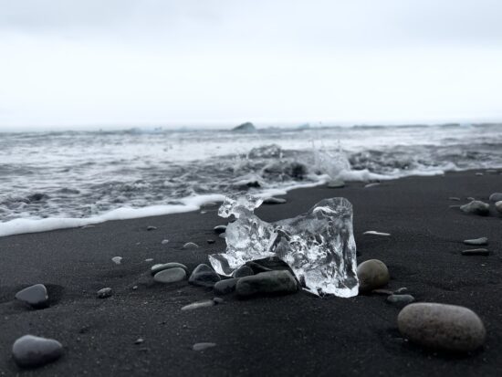 Große Eisberge in der Größe von Autos und Eisklumpen am Strand in der Größe von Eiswürfeln – der Strand heißt nicht umsonst Diamond Beach! Am besten gefällt es uns jedoch, direkt am Wasser zu stehen und den Geräuschen der Eisberge zuzuhören, wie sie knacken und tropfen, während sie mit den Gezeiten dahintreiben.